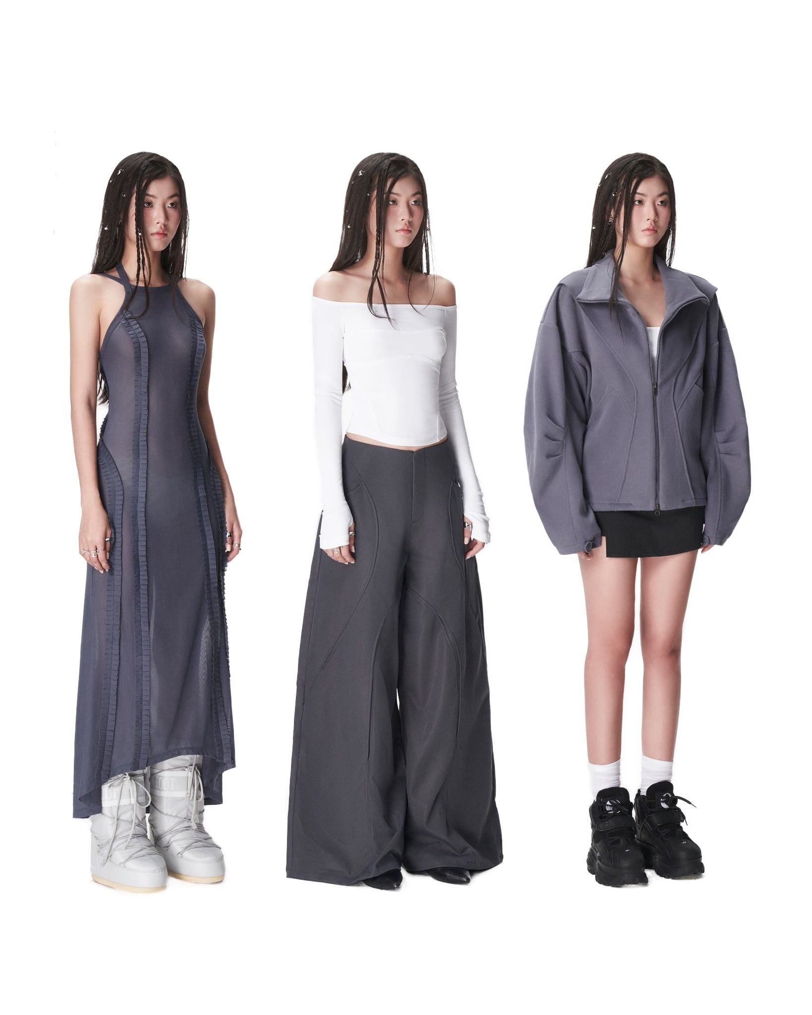 EACH PIECE BLENDS SOFTNESS WITH STRENGTH, COMBINING SUBTLE TEXTURES AND DARING LINES, REFLECTING THE ELEGANCE FOUND IN EMBRACING BOTH LIGHT AND DARK. LOVE CRUMBS IS A METAPHOR FOR FINDING BEAUTY IN THE QUIET MOMENTS AND TURNING THEM INTO LASTING MEMORIES, MOVING THROUGH LIFE WITH BOTH VULNERABILITY AND RESILIENCE.