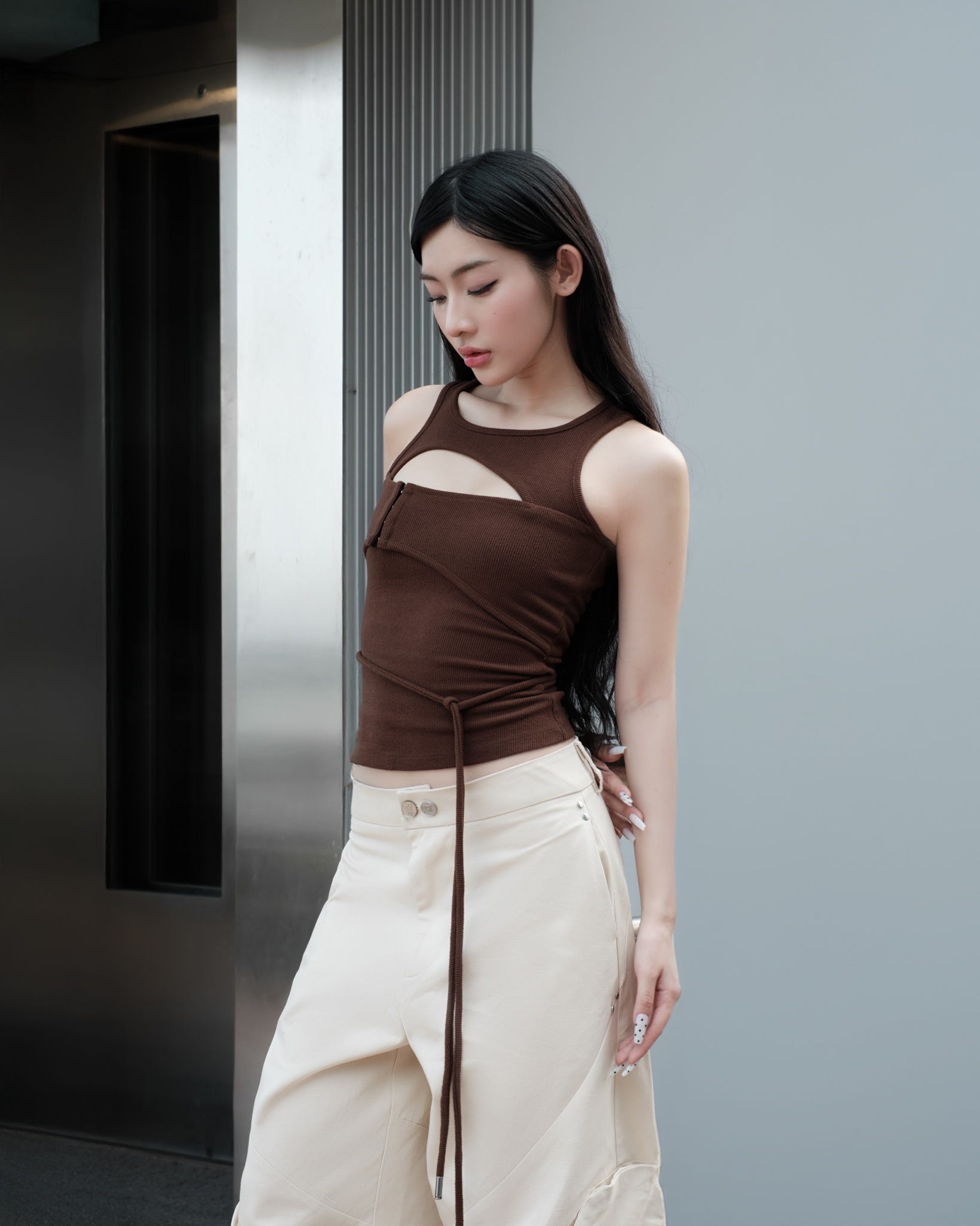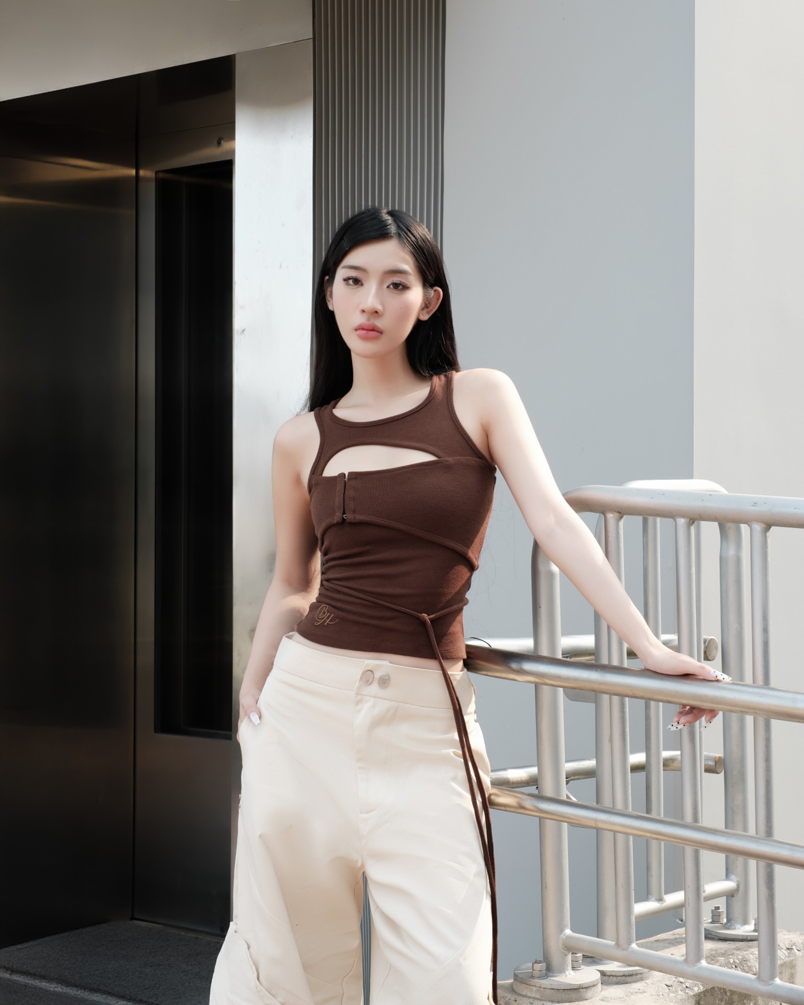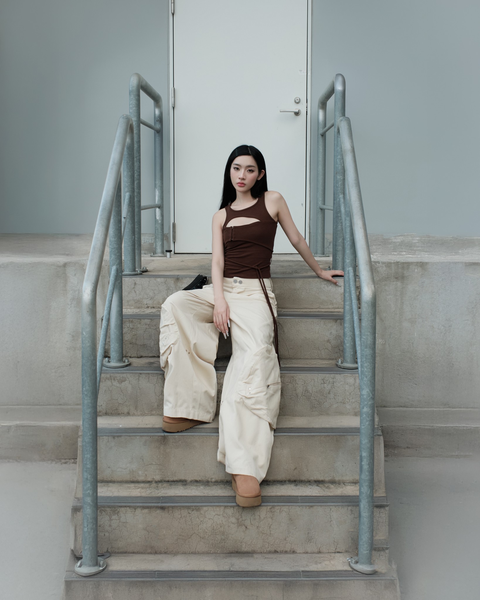 3. REVIEW: CONRAD SLEEVELESS TOP (BROWN) & MARLOWE PANTS (BEIGE)