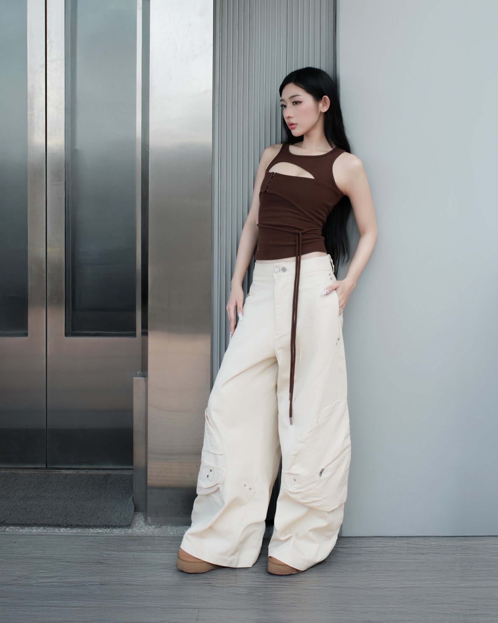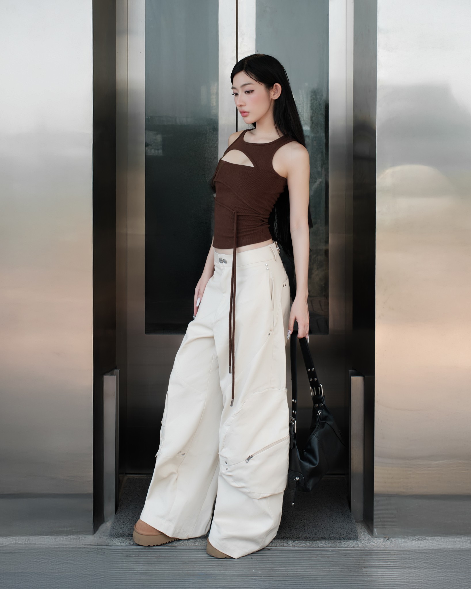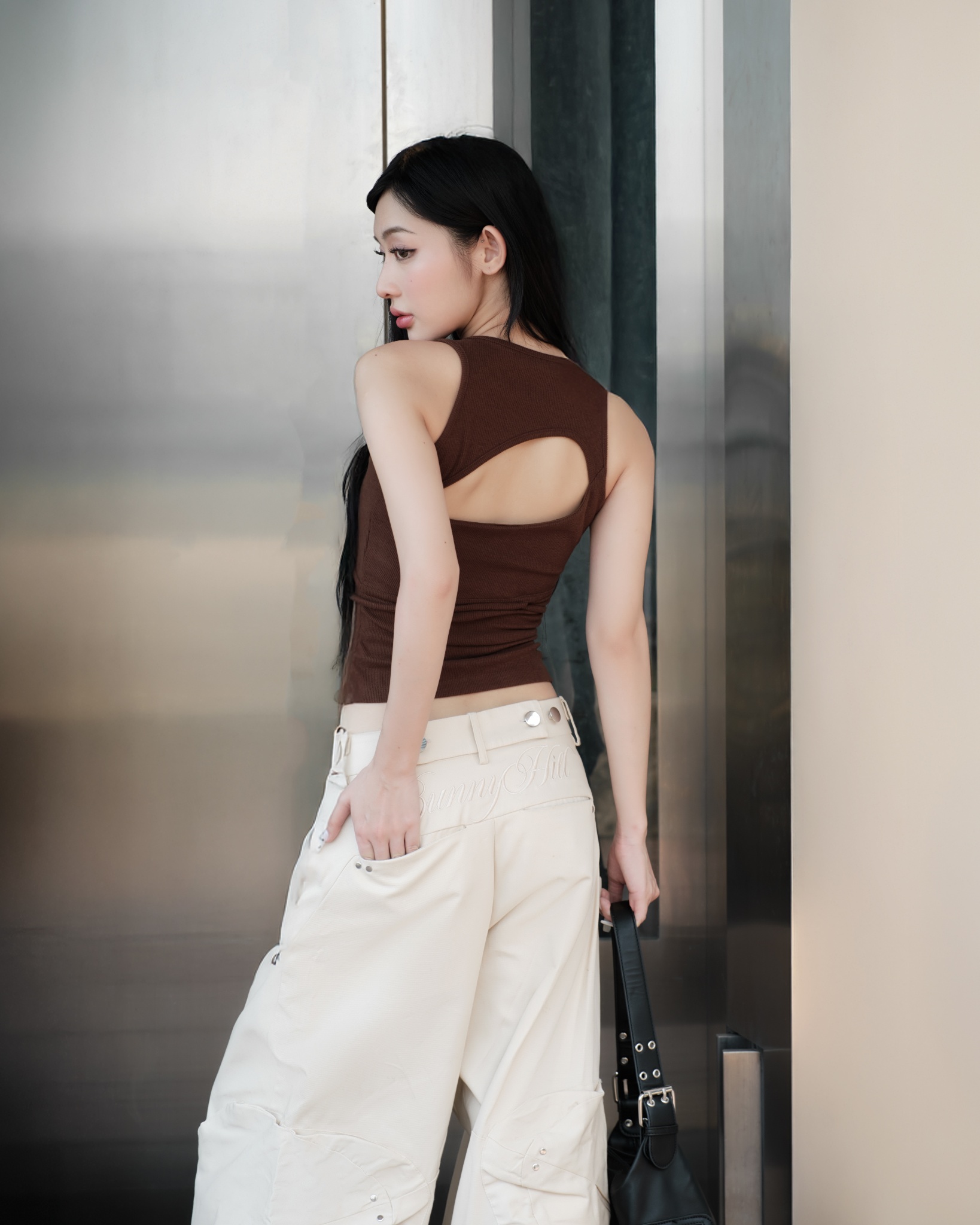3. REVIEW: CONRAD SLEEVELESS TOP (BROWN) & MARLOWE PANTS (BEIGE)