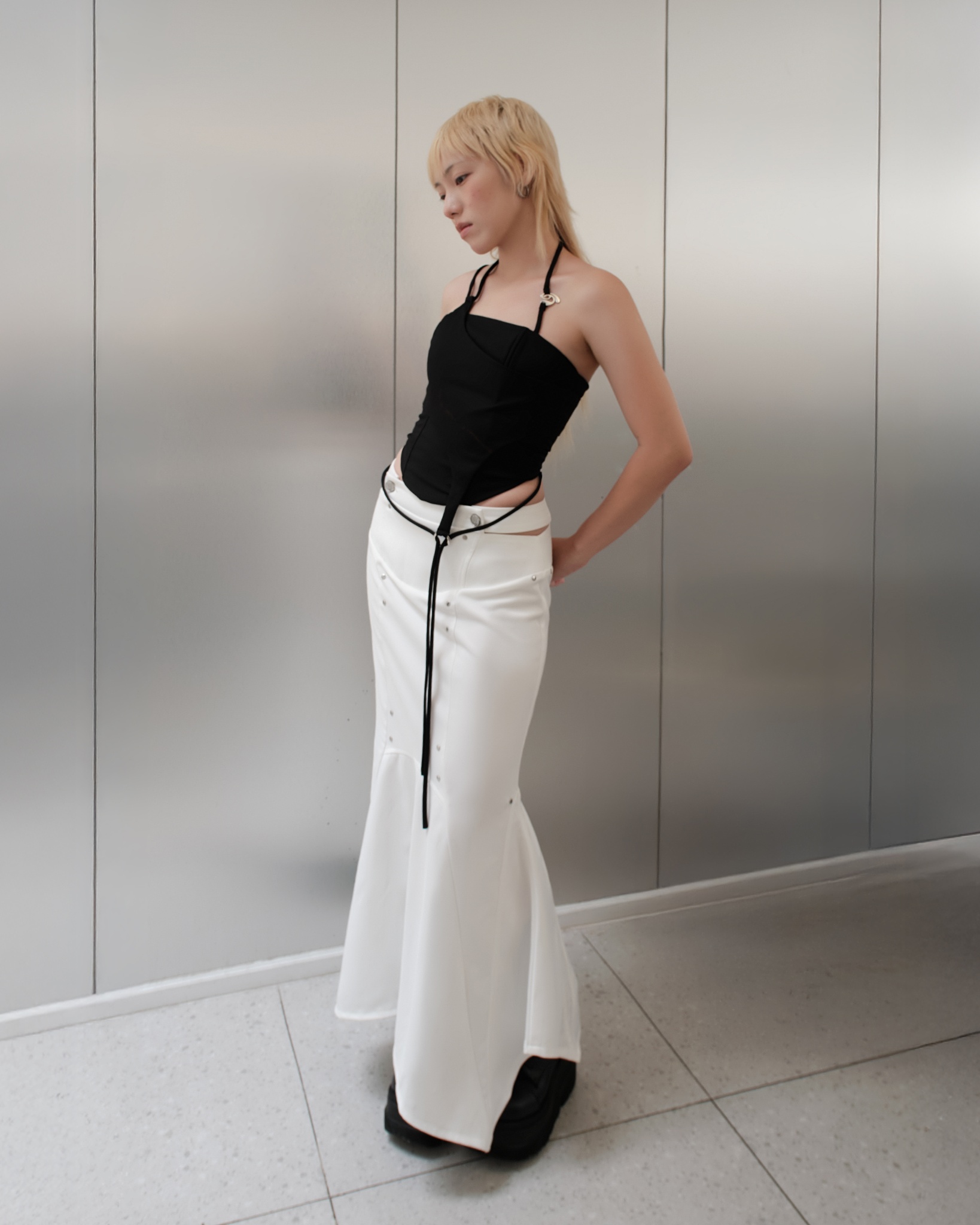 3. REVIEW: LULLABY HALTER TOP (BLACK) & NASH FLARED SKIRT (BLUE WASH)
