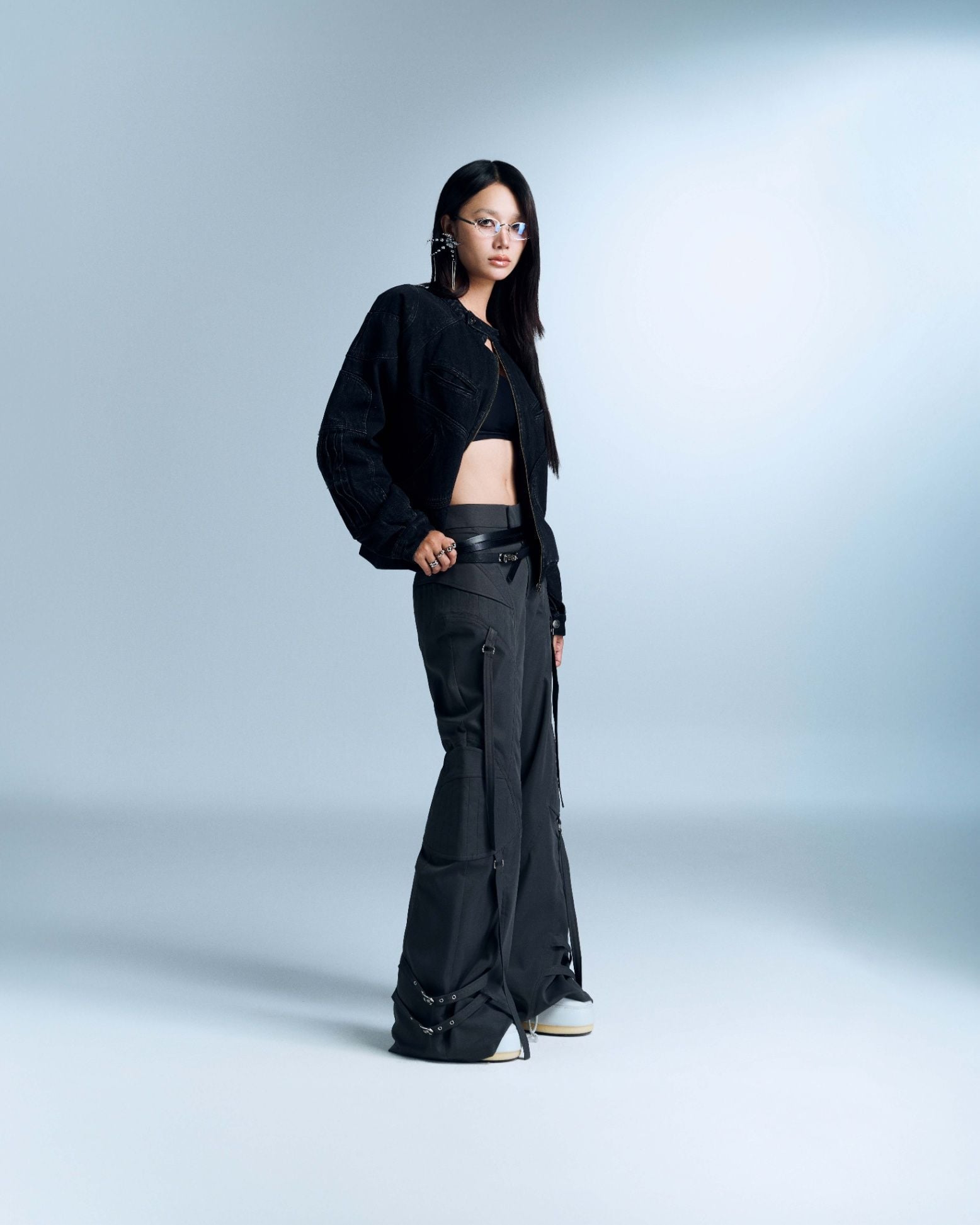 Mô tả: Quần phom ống loe. Có chi tiết xếp ly túi và đính dây trang trí.