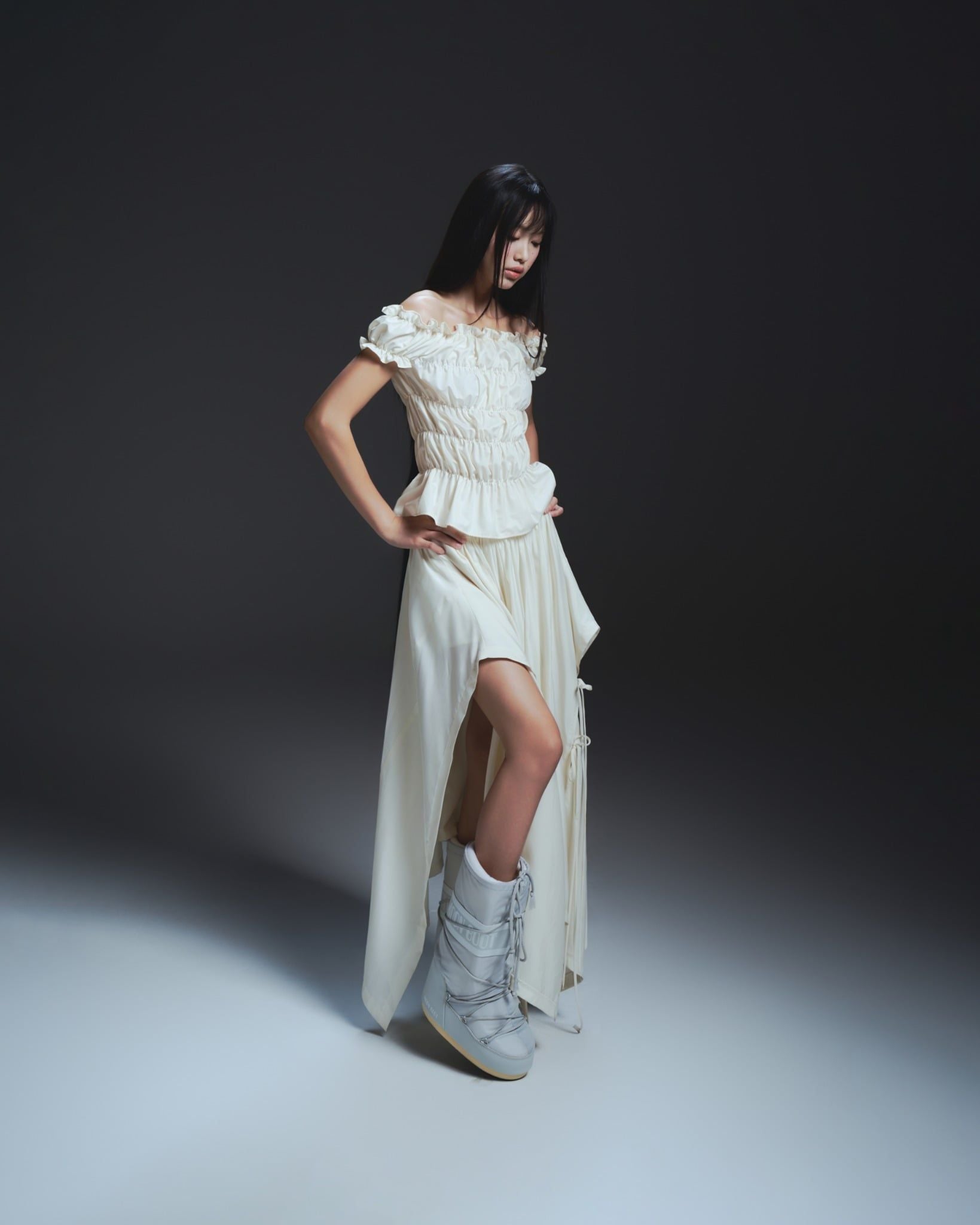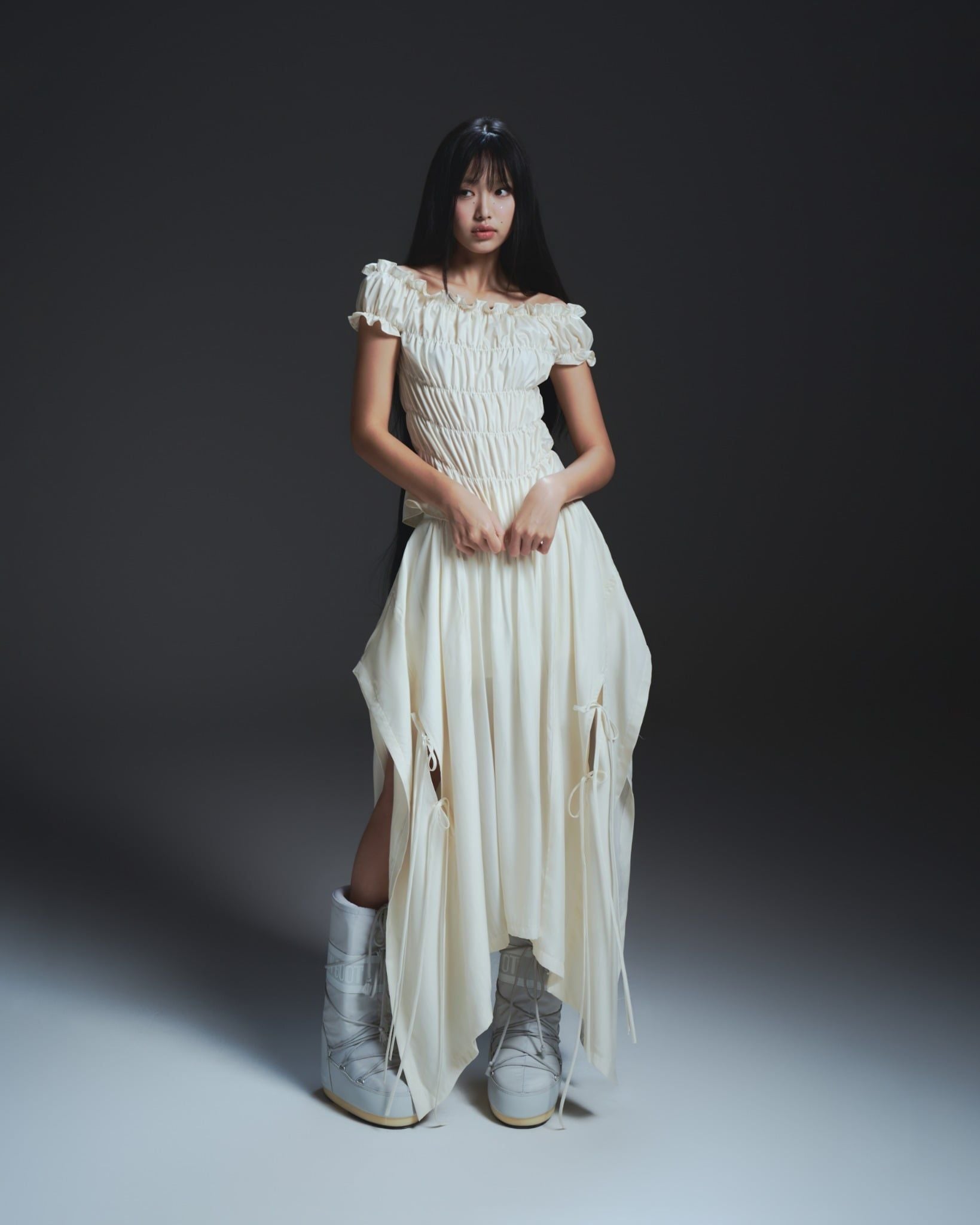 Mô tả: Áo hở vai nhún thắt nơ. Có thể mặc cả 2 mặt.
