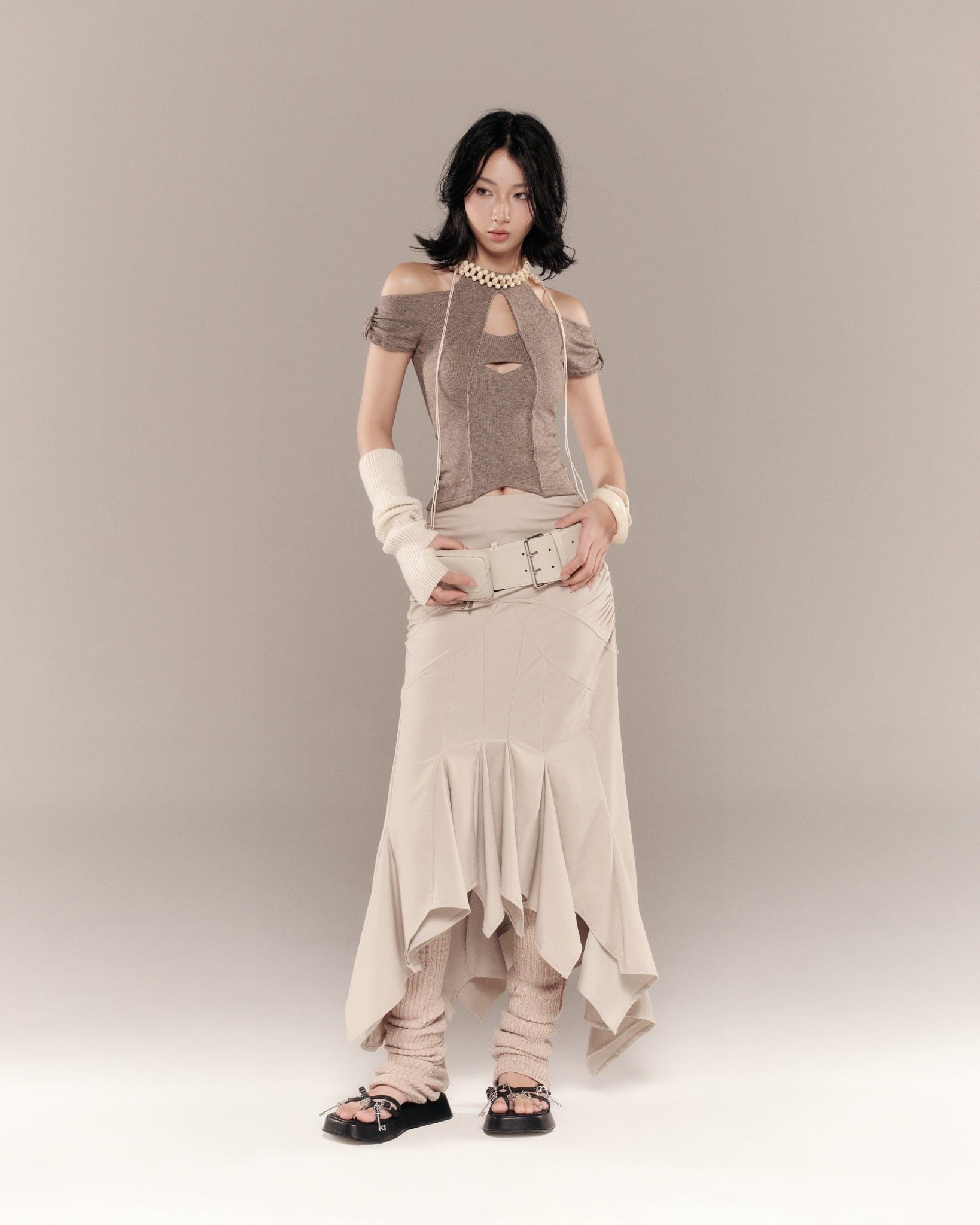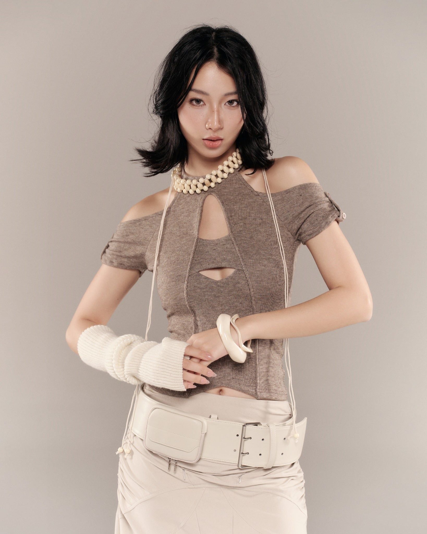 Mô tả: Áo hở vai, tay ngắn. Phía trước có chi tiết cut-out.